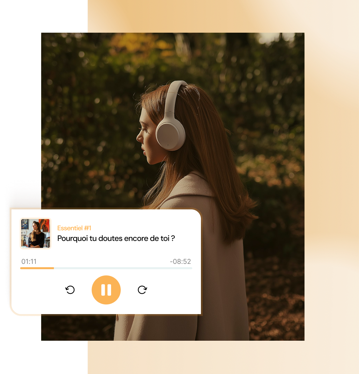 Écoute nos contenus partout, que ce soit dans les transports, en balade ou chez toi. Des conseils, des réflexions accessibles à tout moment pour t’accompagner au quotidien.